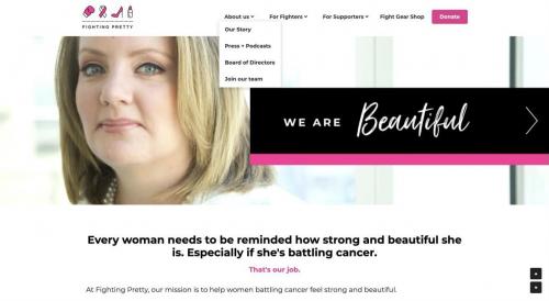 你可以将相似类别的网页内容进行归类,将它们收纳在同一个导航下。正如你在下图Fighting Pretty所看到的。选项上的每个导航都可以扩展以查看特定的网页内容。只需要将鼠标悬停在每个导航上,你就能看到下拉选项。除了这个,Fighting Pretty也在网站标题上放上了企业商标、公司名称,应用了突出显示的功能。