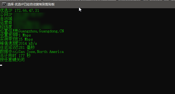 稍等一会儿,better-cloudflare-ip就可以生成你本地访问CloudFlare CDN节点最快的IP地址了。