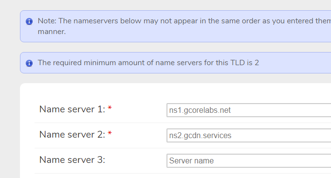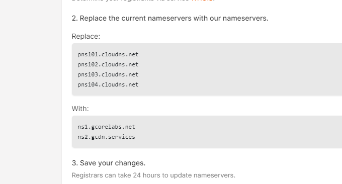 然后Gcore会给你NS记录。