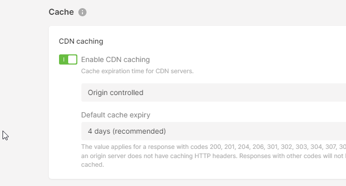Gcore支持设置缓存有效期、浏览器缓存等。