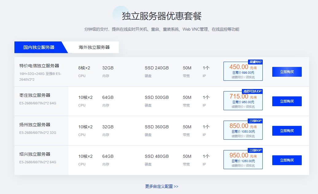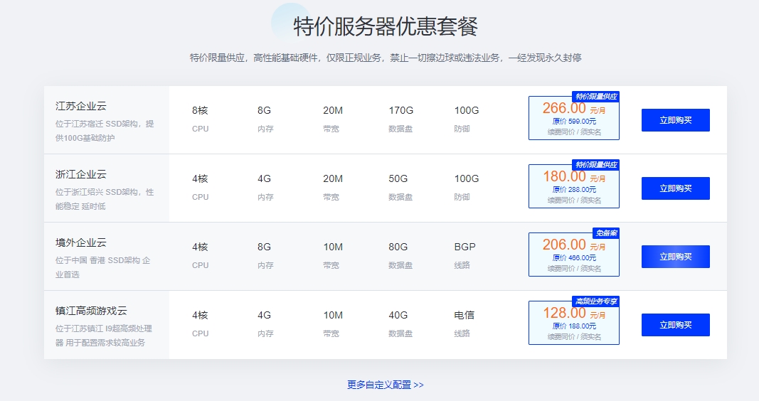 最新活动包含:新客专享云服务器套餐 、特价服务器优惠套餐 、独立服务器优惠套餐 、CDN优惠套餐等,具体如下: