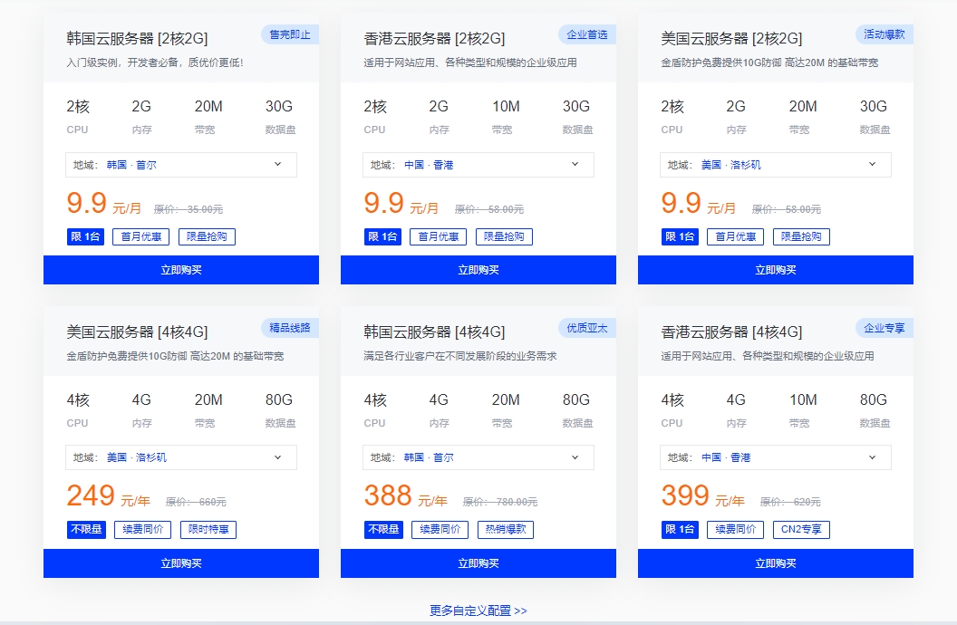 海量产品 轻松上云精选华中/香港/美国/欧洲多种云服务器产品,低至 9.99元/月