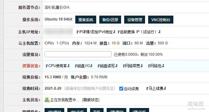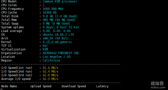 这个是HostYun VPS主机CN2 GIA主机的磁盘IO和内存、CPU配置,IO非常低。