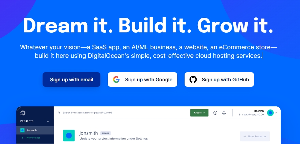 DigitalOcean官方网站:https://www.digitalocean.com/