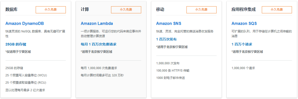 永久免费套餐产品不会过期,而是无期限地提供给 亚马逊云科技中国(宁夏)区域的现有客户和新客户。