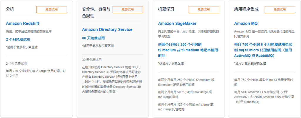 亚马逊云科技推出免费云服务器活动,申请中国(宁夏)区域账户免费套餐可以免费体验中国区域产品和服务,包括三种不同类型的优惠,12 个月免费套餐、永久免费套餐和试用。