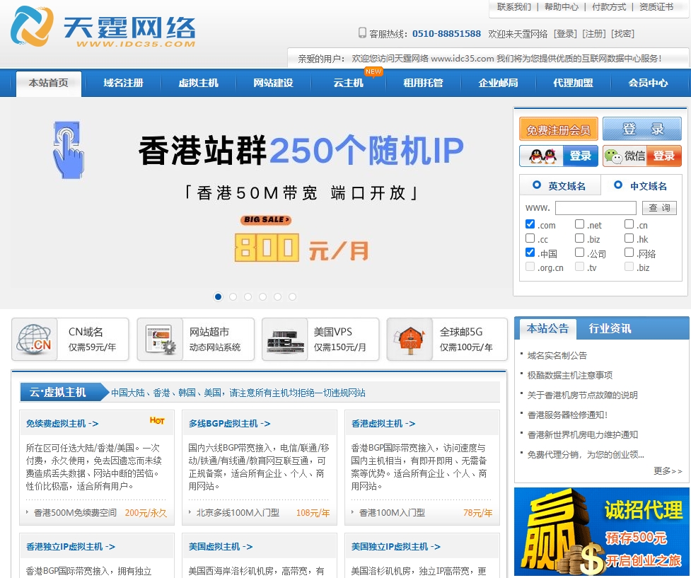 天霆网络专业提供:香港虚拟主机,北京虚拟主机,无锡虚拟主机,美国虚拟主机,香港服务器托管,无锡服务器托管,香港服务器租用,无锡服务器租用,美国服务器租用,香港云主机和美国云主机,隶属无锡天霆网络科技有限公司,天霆网络成立于二零一三年四月,公司持有经中华人民共和国工业和信息化部核发的ISP、ICP和IDC电信增值业务经营许可证(苏B1-20180464)。