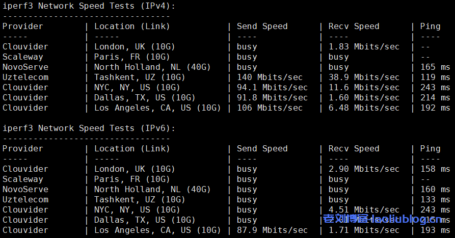 iperf3测试下几个欧美节点的数据,含IPv6数据