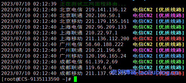 三网路由回程情况,电信联通移动均走电信CN2优质线路