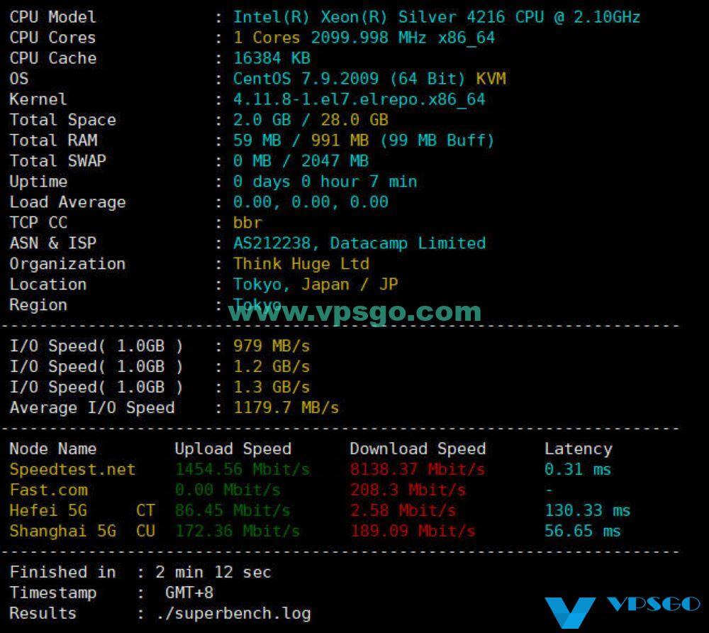 OneVPS日本东京机房bench测试如下,IO很优秀: