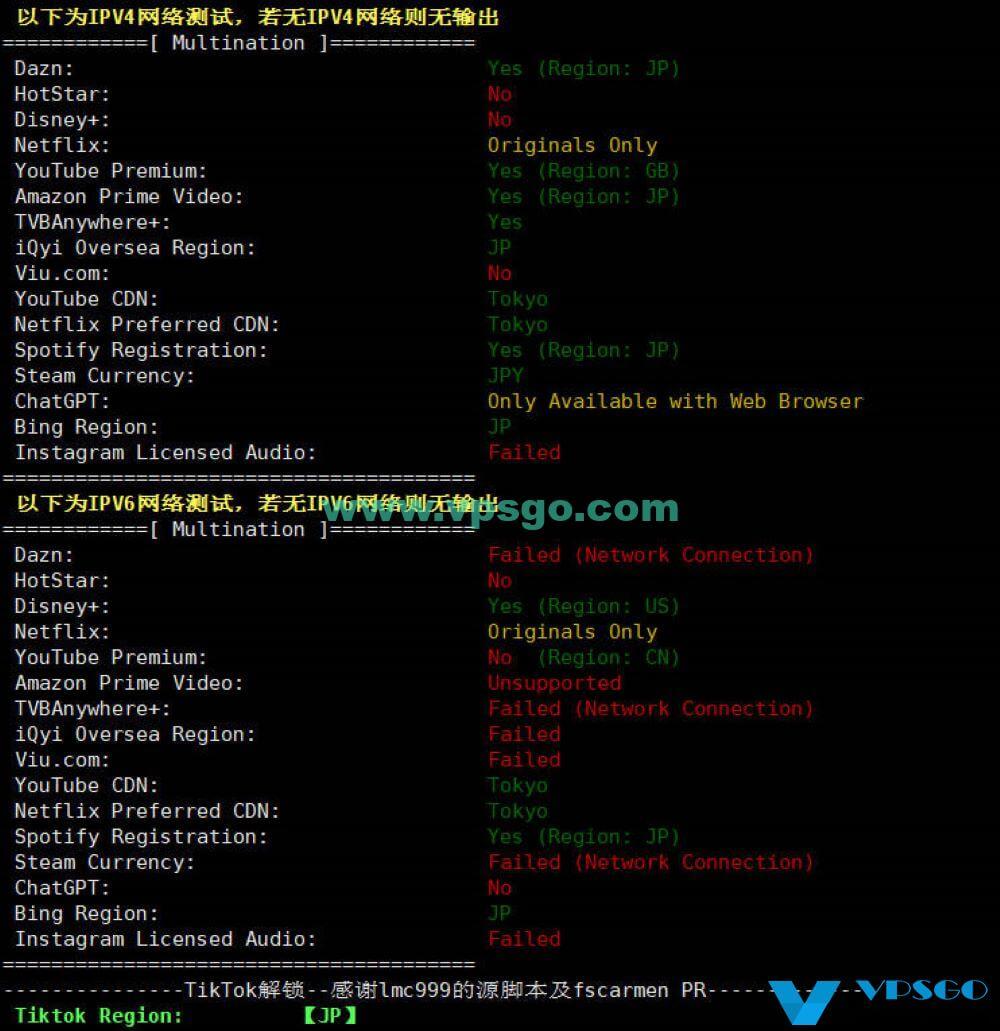 OneVPS日本东京VPS流媒体解锁测试如下: