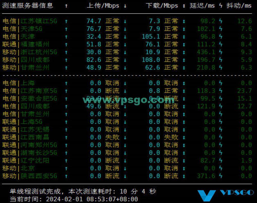 联通线路 | 71 | 江苏镇江(联通-xf) 56.4 毫秒 | 陕西西安(联通) 671.4 毫秒 | 103.4 毫秒 |