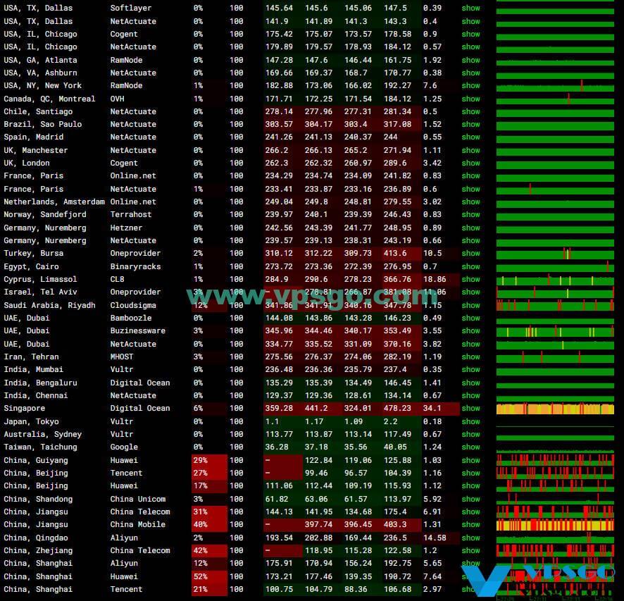 西南地区 | 31 | 贵州贵阳(联通-xf) 105.5 毫秒 | 贵州贵阳(移动-xf) 349.5 毫秒 | 173.8 毫秒 |