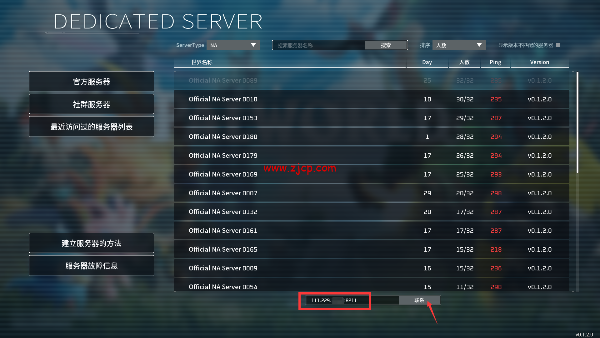 第四步:至此,您已经成功搭建了幻兽帕鲁专属服务器(Dedicated Server),可以让玩家输入您已部署服务器的公网IP地址和端口好(如11.11.11.11:8211),连接服务器成功后即可畅快联机开玩。