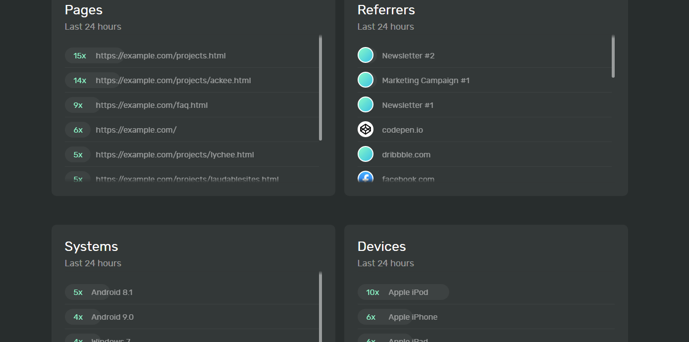 Fathom统计是一个更简单,并注重隐私的 Google Analytics 替代方案,Fathom分为Lite 和Pro版本,Fathom Lite,是免费开源的(基于 MIT 协议),可以自己搭建,需要VPS安装,功能相对简单些,仅推荐给个人网站使用。