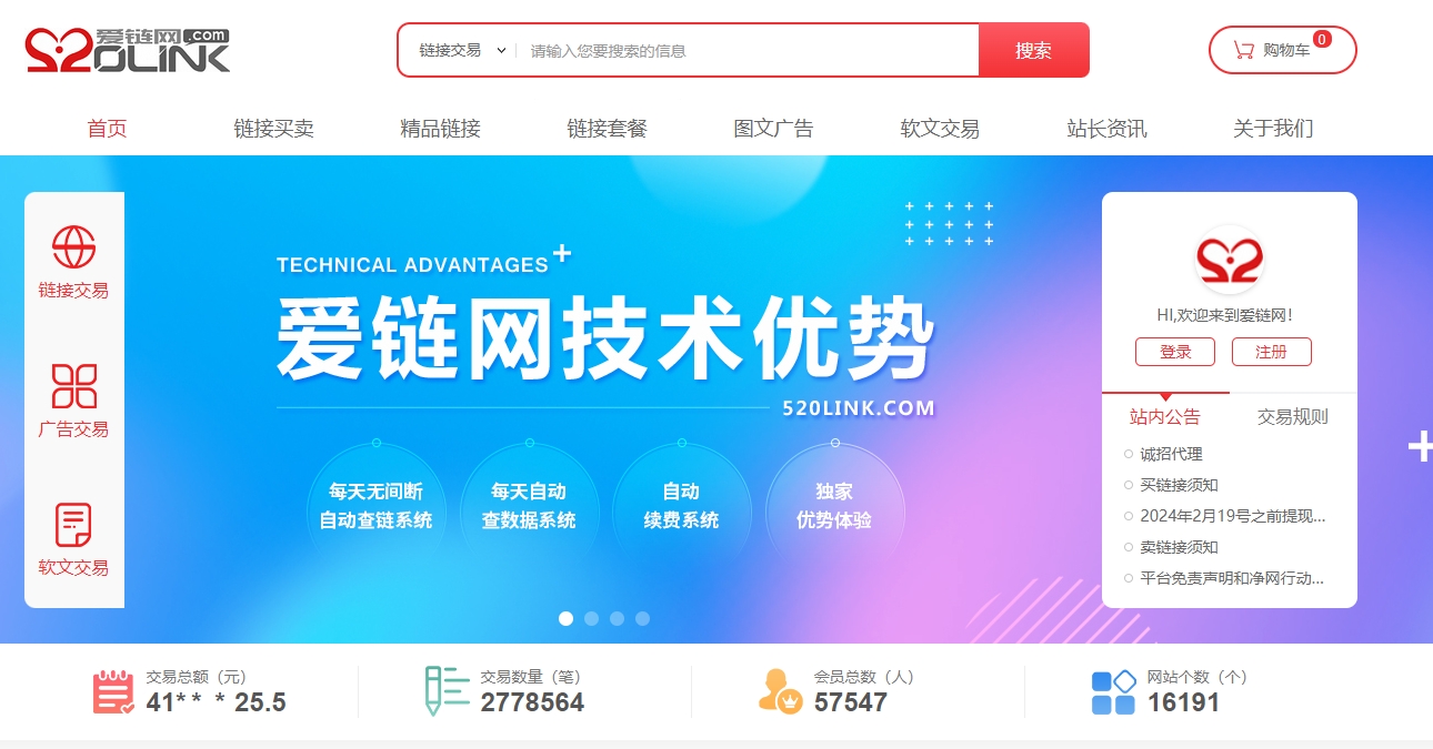 爱链网外链交易平台提供方便、快捷、安全的外链交易服务,友情链接平台,外链买卖,出售链接,求购链接,链接打包出售,买链接,卖链接,外链打包购买,链接交易,我们坚持为广大站长推广网站服务。