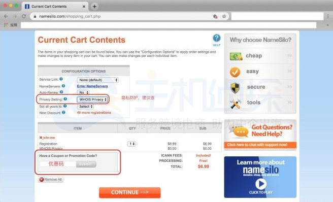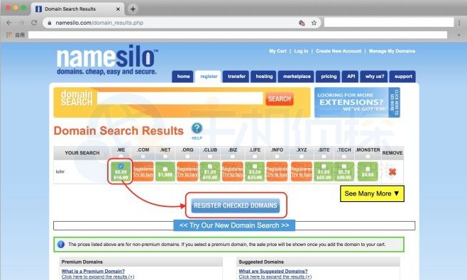 如果没有试过在 NameSilo 注册过域名的话,可以参照下面教程走一下。