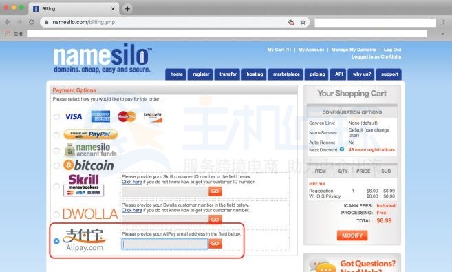 NameSilo 是一家经 ICANN 认证的国外域名注册商之一,提供免费的域名隐私保护。因为不在国内的原因,在 NameSilo 注册的域名可以不需要备案,而且Namesilo 的价格一直是很低的,而且还支持支付宝支付,无形之中为国内用户购买提供了极大方便。