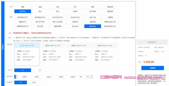E5-2620v2(24核) | 16GB DDR3 | 240G SSD | 20Mbps | 不限 | 5G | 480元/月 |