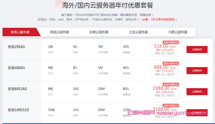 香港2核4G | 香港4核8G | 香港8核16G | 香港16核32G |